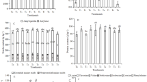 The soil microbial community was characterized using phospholipid fatty acid (PLFA) analysis. The PLFA was extracted from the soil using the procedure described by Wu et al.25. Total lipids were extracted from 8āg of soil sample using potassium phosphate, chloroform and methanol buffer. Phospholipids were fractionated from neutral and glycolipids on a silica column. After mild alkaline methanolysis for the production of fatty acid methyl esters (FAMEs), samples were dissolved in hexane and analyzed in an Agilent 6890āN gas chromatograph with Agilent 19091B-102 (25.0āmāĆā200āµmāĆā0.33āµm) capillary column. Hydrogen was use as a carrier gas and the fatty acid 19:0 was added as an internal standard before methylation. The fatty acid methyl esters were identified automatically by the MIDI peak identification software (version 4.5; MIDI Inc. Newark, DE)26. The following fatty acid nomenclature was used: total number of carbon atoms: number of double bonds, followed by the position of the double bond from the methyl end of the molecule. Cis and trans configurations are indicated by c and t, respectively. Anteiso- and iso-branching are designated by the prefix a or I. Methyl group on the 10th carbon atom from the carboxyl end of the molecule was shown as 10Me27. Total amounts of the different PLFA biomarkers were used to represent the different groups of soil micro-organisms. The sum of the following PLFA biomarkers were considered to represent bacterial origin (gram-positive bacteria by i14:0, i15:0, a15:0, i16:0, a16:0, i17:0, a17:0, gram-negative bacteria by 16:1v9c, cy17:0, 18:1v5c, 18:1v7c, cy19:0, bacteria were represented by the sum of the two)28. Biomarkers 18:3v6c, 18:1v9c and 16:1v5c were used for fungal PLFA, and 10Me16:0, 10Me17:0 and 10Me18:0 were used for actinomycetes PLFA29. All of the PLFA biomarkers indicated above were considered to be the representative of total PLFA of the soil microbial community.