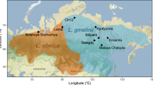 Semerikov, V. L. et al. Southern montane populations did not contribute to the recolonization of West Siberian Plain by Siberian larch (Larix sibirica): a range-wide analysis of cytoplasmic markers. Molecular Ecology 22, 4958–4971 (2013).