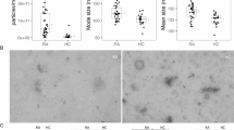 Circulating and SF EVs were isolated and characterized as we previously described19 by using monoclonal antibodies against human CD41a-PE, CD45-PE-Cy7, CD105-BV421, CD33-PE, CD235a-APC, CD3-PE, CD19-V450, CD14FITC, CD16-BV450, HMGB1-APC, C1q-FITC, and HLA-DR-APC-Cy7. To measure EV-ICs, F(ab’)2 anti-IgG-Alexa Fluor-488 and anti-IgM-Alexa Fluor-647 fragments were used. To evaluate the presence of citrullinated peptides on EVs by flow cytometry, a specific primary antibody (rabbit polyclonal anti-human citrulline peptides antibody), and Alexa Fluor 647-labeled secondary antibody (anti-rabbit IgG H&L-Alexa Fluor 647-secondary antibody) were used. The EV size and count were evaluated with reference beads as we previously described19. Some EVs samples from patients with RA and HCs were evaluated through scanning transmission electron microscopy (STEM). For this purpose, the vesicles were fixed with 2.5% glutaraldehyde, deposited on copper-coated carbon STEM grids; dried in the grid at 40 °C, and contrasted with uranyl acetate and lead citrate. Finally, the samples were dried at room temperature and evaluated in the Tecnai G2 F20 microscope (FEI company, Hillsboro, OR). Images were recorded with an Ultra Scan 1000XP-P camera (Gatan, Inc, Pleasanton, CA).
