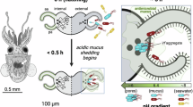 The functions of the ventral tube have been extensively studied10,11,12,13,14,15,16,17,18,19,20. This organ is extremely important in fluid and electrolyte balance, but can also function as a sticky appendage to enable springtails to adhere to slippery surfaces1. In some species, the vesicles of the ventral tube may extend more than twice the length of the body and be used for self-righting after a jump21. The eversible vesicles were regarded as a “cleaning” organ to clean up the body, or as a sticky appendage to enable springtails to adhere to slippery surfaces1,2. The adhesive ventral tube may even help direct the springtail jump22,23. An experiment carried out with Sminthurus viridis suggests that the ventral tube is used for conveying droplets of water from the hairs of the body to the mouth24.
