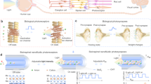 The human eye is a fantastic photodetector: it works at room temperature in a complex biological environment, and yet it is able to detect single photons1. On the other hand, much work has been devoted to the fabrication of synthetic single-photon systems2 such as superconductor nanowire detectors3,4,5 and avalanche photodiodes6,7. Each of these approaches provides advantages for single-photon detection, but also suffer from limitations. Thus, new photodetector modalities that could circumvent or alleviate some of these limitations are of interest. One such approach is to use nanomaterials and concepts from solid-state devices to realize bioinspired detectors.
