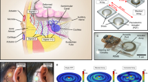 As the first step of our modeling procedure, we recorded the velocity at the umbo in response to stimulation with a 50 µJ laser pulse (mathematically represented as equation (1)) at the same position. We then calculated the displacement using these velocity data, which is represented as the impulse response of the system: \({\rm{h}}[{\rm{n}}]={\rm{T}}\{{\rm{\delta }}[{\rm{n}}]\}\). The convolution of this impulse response h[n] with an input function representing the desired sequence of laser pulses f[n] (equation (2) led to the model function y[n], which represents the displacement of the umbo vibrations in response to laser stimulation with f[n] (equation (3)) (see Supplementary Fig. S1).