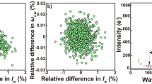 Physical insight into the behaviour shown in Fig. 2 and indeed into Eqs (36–41) can be gained by first considering the case of a purely monochromatic input, but allowing for the finite width of the amplitude response function of the dispersive element (\({{\rm{\Gamma }}}_{p}=0\), \({\gamma }_{{\rm{disp}}}\ne 0\)). In this case the contribution to Eqs (36–41) from each spectral peak follows an inverse power law (of varying degree) in the instrumental peak width \({\gamma }_{{\rm{disp}}}\). As the spatial width of a peak decreases, so the energy contained within that peak is confined to a smaller area, such that the signal to noise ratio at each position on the detector improves and a better estimation precision ultimately results. In each non-zero element of the FIM, there is however an additional dependence on the scale factor α appearing in the numerator (with the exception Eq. (39)). This factor captures the intuitive expectation that spatial positions, separations or widths can be more precisely determined when they are magnified. Taking the estimation of \(\bar{{\rm{\Omega }}}\) as an illustrative example, we note that as α decreases so the inelastic peaks are positioned closer together on the detector, however, the finite (fixed) peak width means it is consequently harder to individually resolve the peaks and hence determine their separation.