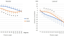 Importantly, a clear change of pivot was reported between the measured activities: while a clear lateral pivot was observed during the unloaded activities, a change towards a medial pivot was observed in the loaded lunge, likely due to the influence of muscle activation and axial load during closed chain activities44. Apart from this changed pivot, a clear external axial rotation of the femoral component relative to the tibia component was evident in both activities; however, the performance was location- and activity-dependent. The medial pivot during the loaded activity was coupled with an external rotation and a rollback of the lateral condyle, similar to the reports of Pinskerova and colleagues on healthy knees from extension to flexion25. However, the lateral pivot during the unloaded activity showed an external rotation coupled with an anterior sliding of the medial condyle. In contrast, this motion pattern has been observed in unconstrained TKA designs with up to 20% more prevalence of a lateral pivot during stair navigation15. It is also similar to the reports on healthy knees during walking and running26,27,28 and to the anterior translation of around 8 mm observed during knee flexion in the medial condyle of subjects with ACL deficient knees29.
