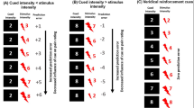 Participants first underwent a pain calibration procedure on their left hand to determine their response to increasing electrical stimulus intensities. The first stimulus was at a low intensity which is below the threshold for pain perception in most people. The stimulus intensity increased in a ramping procedure up to a maximum of five volts. We used a 0–10 Numerical Pain Scale (NPS) to measure the pain intensity rating, where a pain intensity rating of NPS 2 was when the stimulus became “just painful”, NPS 5 was “medium pain”, and NPS 8 was at the point where stimulus was “just tolerable”, replicating previous research63,64. We repeated this procedure three times and computed the average stimulus intensities over these three repetitions corresponding to NPSs 2, 3, 4, 5, 6, 7 and 8. Participants then underwent a pre-experiment test procedure: stimulus intensities corresponding to their pain intensity ratings NPS 2 to 8 were delivered in a pseudo-randomised order four times and participants were instructed to identify the intensity of each pulse. Participants had to correctly identify 75% of stimulus intensities to continue to the main experiment. If they did not achieve this in the test procedure, the intensities were adjusted (intensity was increased if participants rated the stimulus intensity as lower than in the pain calibration procedure, and vice versa), and the test repeated until participants correctly identified 75% of stimulus intensities.