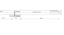 To provide quantitative insight into pore pressure responses under random waves, especially long waves, we conducted a unique large-scale flume experiment at Ocean University of China. As shown in Fig. 1, the wave flume was 60 m long, 3.0 m wide, and 2.0 m high. A sediment pit (3.0 m by 3.0 m by 0.5 m) was located 38 m from the wave generator and 15 m from the wave dissipation zone. The sediment pit in the middle of the flume was filled with silt sediment taken from the Yellow River delta, which is known to have strong liquefaction potential, and the same sediment has been used in previous studies involving regular waves13. The flume was equipped with a hydraulically driven piston-type wave generator at one end and a 1:3 dissipating beach covered with energy absorbing material at the other end to mitigate the wave reflection. We measured pore pressures at a number of locations in the bed to show how pore pressure develops in the silty bed under the designed random wave sequences. We recorded water-surface elevations with a capacitance wave gauge located at the edge of the sediment pit. The absolute accuracy of this wave gauge was ± 1 mm. Both regular and random waves could be generated by the wave generator with a fully programmable controlled motor.