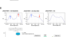 Pull-down assay was performed as described previously7,8,10. HEK293 cells were seeded in 60-mm dishes and transfected the following day with appropriate amount of each plasmid using PEI-MAX transfection reagent28. After a 48-h incubation, the cells were lysed and then centrifuged to remove the debris. Each supernatant was incubated with purified GST-JRAB-C or -CH + LIM attached to glutathione–Sepharose beads. The beads were then washed and resuspended in sodium dodecyl sulfate (SDS) sample buffer. Comparable amounts of the proteins that remained associated with the beads were separated by SDS–polyacrylamide gel electrophoresis (PAGE). The fraction of target protein bound to the beads was determined by western blotting using an anti-GFP antibody (Invitrogen) as described7,10.