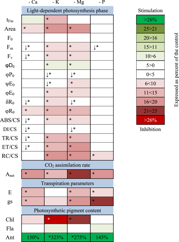 Table 2 Changes in parameters describing photosynthetic apparatus performance of maize under deprivation of Ca, K, Mg or P.