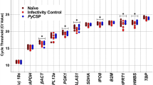 Four different software algorithms were used to determine the transcription stability of selected candidate reference genes: NormFinder, geNorm, BestKeeper, and the comparative ΔCT method50,51,52,53. Two separate sets of analyses were performed. On the one hand, all samples from NEJs, immature, and adult worms were analysed to obtain the most stably transcribed genes for studies dealing with different life stages of the parasite. On the other hand, all samples from NEJs and in vitro-grown juvenile worms were used to reveal the best reference genes for gene expression studies in in vitro-culture experiments.