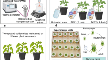 We observed changes at physiological, biochemical and molecular level in tomato seedlings treated with PAW as compared to control seedling. The diagrammatic representation of the experiment strategy is shown in Fig. 1a. The air plasma jet instrument used in this study was developed in Plasma Research Bioscience Center, Kwangwoon University, Seoul, South Korea. The experimental setup of plasma treatment to water is shown in Fig. 1b. For irrigation, freshly prepared PAW was always used and all the physiological, molecular and biochemical parameter were assessed in 35 days old seedlings.