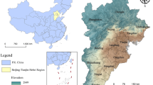 MOD17A3 (Terra/MODIS Net Primary Production Yearly), MOD16A3 (MODIS Global Evapotranspiration production yearly), MOD13A3 (Vegetation Indices Monthly) and MOD11A3 (MODIS temperature production Land Surface Temperature and Emissivity 8-Day) were acquired from EARTHDATA of NASA (http://ladswed.nascom.nasa.gov), and the resolution is 1 kilometers. Thereof, the yearly mean value was counted based on 12 images about each month; the mean temperature was calculated base on 14 images from June to September in summer, then local climate regulation index was counted. The land cover map and soils map was used as input for calculating curve number, which referring to a USDA-NRCS technical report46, using advanced implementations by Whitford et al.47 and Tratalos et al.48. The carbon sequestration capacity values of different land use types was derived from exiting studies40,48.