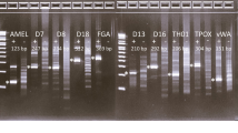 Collins, P. J. et al. Developmental validation of a single-tube amplification of the 13 CODIS STR loci, D2S1338, D19S433, and amelogenin: The AmpFlSTR® identifiler® PCR amplification kit. J. Forensic Sci. 49, 1265–1277 (2004).