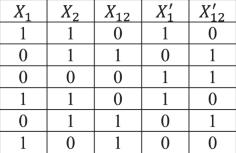 \({X}_{1}=100101\), \({X}_{1}^{\text{'}}=101100\), \({X}_{12}=010011\). | \({Y}_{1}=110101\), \({Y}_{1}^{\text{'}}=111100\), \({Y}_{12}=000011\). | ||
