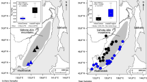Samples of adult mule deer fur were collected in close proximity to the lichen sampling sites, in both ocean-facing and bay-facing sub-regions, and were analyzed for THg concentrations. These data are shown in Fig. 1B, and reveal that the mean THg concentration in deer samples from the ocean-facing region was significantly higher (41.2 ± 4.9 ng g−1, N = 18) than that from the bay-facing region (21.6 ± 3.2 ng g−1, N = 38, one outlier sample removed, see Tables 1 and S2).