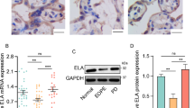 Statistical analyses were performed using Graphpad Prism version 8 software using unpaired t-tests in case of two groups or with one-way ANOVA (using the mean of technical replicates) followed by a Bonferroni multiple comparison test when comparing multiple groups, while cohorts consisting of serum or plasma samples were initially analyzed using SPSS version 25 software. To be able to include undetectable samples in data analysis we added 1 (pg/ml) to all ELA measurements before log transforming the data. Correlations were performed using bivariate Pearson correlation analysis. P values < 0.05 were considered significant.
