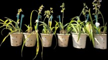 The differentiation of stamen and carpel tissue could be clearly observed in the aborting flower buds, even so the pale and brownish coloration in iRNA lines indicated an abortion in development, chlorophyll loss and necrosis (Figs. 7 and S3). This early onset of flower senescence occurred well before flowers achieved the normal size of flower opening in Petunia.