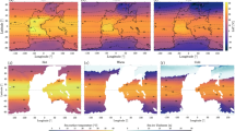 We used Mahalanobis distances and its standardization based on the Chi distribution to calculate σd. This approach accounts for covariance among variables, the dimensionality of the data (number of variables), and local inter-annual climate variability thus facilitating comparisons across space and variable combinations. Mahalanobis distances were calculated on standardized data (i.e., normal distributions based on means and standard deviation calculated during 1958–1987). This approach assumes variables adhere to a multivariate Gaussian distribution, which may be reasonable for some variables, but could be problematic for zero-bounded data (e.g., D) and for temperature extremes in some portions of the globe. We conducted a sensitivity analysis that used clamped non-parametric distributions to assess whether results were substantially altered by these assumptions (Supplemental Methods). The choice of data transformations did not substantially alter the general results of the study, although the truncated nature of the non-parametric distributions reduced overall magnitudes of departures. More advanced multivariate approaches such as copulas may provide additional nuance beyond the linear approaches used herein70. Trends for σd and climate departure for individual variables during 1958–2017 were calculated using Sen-Theil slope estimator and were considered significant using the Mann-Kendall trend test at p < 0.05. Similarly, standard trends using the same approach were calculated on the raw climate variables.