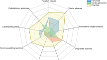 Xylaria ellisii was the most commonly isolated Xylariaceae endophyte from Picea and Pinus in Eastern Canada57. Stromata of X. ellisii were commonly found on decaying Acer saccharum branches or stems in the same forest stands where it was isolated as a Picea endophyte. Endophyte ITS sequences in GenBank corresponding to X. ellisii originate from an exceptional diversity of hosts, including Tsuga canadensis, bryophytes (e.g.: Hypnum sp.), liverworts (e.g.: Metzgeria furcata, Trichocolea tomentella), and lichens (e.g.: Flavoparmelia caperata, Sticta beauvoisii, Xanthoparmelia conspersa) (Fig. 3). In New Brunswick, corresponding X. ellisii stromata were commonly found in late summer and early fall only on decaying Acer saccharum wood; however, the stromatal host range is likely broad. For example, Læssøe (1987) examined European specimens of Xylaria corniformis (probably X. ellisii) from Carpinus and Fagus44 and Rogers (1983) examined North American collections from Betula, Fagus, Malus, and Tsuga45.