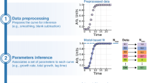 Equation 1 represents the Monod growth function, where \({\mu }_{max}[1/day]\) is the maximal growth rate, \({\rm{s}}[g/L]\) represents the substrate concentration of the medium, and \({{\rm{K}}}_{{\rm{s}}}[g/L]\) is known as the “affinity constant”. Earlier works on kinetics7,8 show the differences in reported literature values for the affinity constant for the same species: these differences are explained by culture history, quality of the experimental data, and posterior data analysis. However little to no consensus can be found in the literature on its interpretation. Furthermore in a review of theoretical derivations of the Monod growth function9 the author concludes that no clear interpretation may be given to the affinity constant. A revision of the affinity concept in Microbiology was made by Button10, where fourteen different expressions for affinity are documented. The concept is largely influenced by the Michaelis-Menten model for enzyme kinetics interpretation of affinity from receptor and ligand binding sites, since Monod’s expression for growth is mathematically equivalent to the Michaelis-Menten expression. As stated by Monod himself, Monod’s growth function is purely empirical, while Michaelis-Menten expression has a rigorous theoretical justification5, thus one might wonder if the concept of affinity for representing cell growth has a solid conceptual ground.