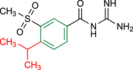 Cariporide | −1.01 (LogP) | 0.008–0.04 | 0.03–3.4 | ND** | ND | ND** | ND | |