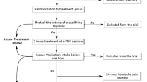 Conforto, A. B. et al. Randomized, proof-of-principle clinical trial of active transcranial magnetic stimulation in chronic migraine. Cephalalgia: an international journal of headache 34, 464–472, https://doi.org/10.1177/0333102413515340 (2014).