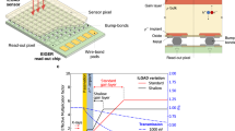 Figure 1b shows the detector’s bandwidth at the two chosen settings. These were measured by scanning the energy of the X-ray beam with the Si(111) monochromator available at the beamline and dividing the counts between the thresholds by the total number of counts recorded by the detector. The red circles represent the bandwidth with the thresholds set for the harmonic “below” and the blue triangles represent the bandwidth with the thresholds set for the harmonic “above”. For both bandwidths an effective energy spread (FWHM) of 3 keV was measured, which is in agreement with previous similar independent measurements16.