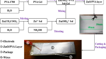 First, the nano-ZnO array and CNT/PVA film layer in the CNT/PVA/ZnO flexible sandwich composite were sequentially synthesized in accordance with the abovementioned methods in Sections 2.2 and 2.3, respectively, where a schematic of the fabrication process is shown in Fig. 3a. Second, the electrodes and wires were connected surfaces of the CNT/PVA/ZnO flexible composite. Third, adhesive tape was precisely placed on the edge of the zinc substrate so as to avoid a possible short circuit between the electrodes and the substrate and the fixed wire. A schematic of the configuration is shown in Fig. 3b.