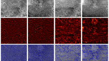 The images were obtained as explained in detail14. A swept-source OCT device (DRI OCT Triton; Topcon) with a center wavelength of 1050 nm with the 7 × 7 mm 3D scan mode was used. The scanning speed was 100,000 A-scans/sec with 8 μm vertical resolution and 20 μm horizontal resolution. B-scan images were created from 256 horizontal direction of 512 A-scans, and 4 scans were averaged. The EnView software (Topcon) was used for flattening the B-scan images relative to Bruch’s membrane, and averaging was performed with images before and after the flattening. These procedures led to the creation of en face images with a thickness of 2.6 μm for each slab. Then the images were used to create as 512 × 512 pixels bit map images.