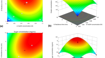 Table 1 clearly indicates that MAC varied between a minimum value 2670.65 mg/100 g to 3250.86 mg/100 g compared to the 3389.26 mg/100 g. Response surface plot (Fig. 1) clearly indicated that MAC increased with the increase in the ratio of SPI:JSS at any given combination of TSS & NBRE-15. This clearly indicates that increase in the content of JSS in the encapsulant matrix increases the MAC which can be because of the presence of polysaccharides such as amylose and amylopectin in JSS, which possesses better binding properties38. Robert et al.38 also found that the increasing SPI content during encapsulation of anthocyanin from pomegranate (Punica granatum) diminished the anthocyanin content.