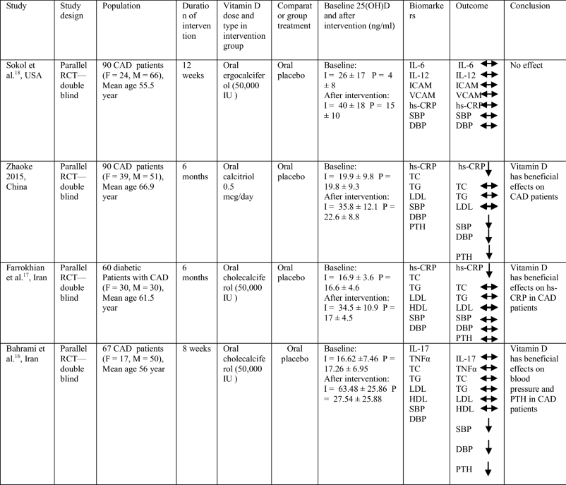 Table 2 Clinical trials studies evaluating effect of vitamin D supplementation versus placebo in CAD patients.