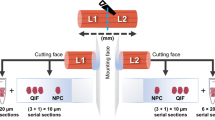 Cryosections of optimal thickness for IMC (6 µm) were cut from transversely orientated cryoblocks and stored at −80 °C until required. The protocol used for antibody labelling is the same as reported previously6, with the exception of modifications stated below. The primary antibody cocktail was altered and is detailed in Supplementary Table S3. Since primary antibodies are conjugated to heavy metals this removes the need for incubation with secondary antibodies. All antibodies were used after a 1:50 dilution. Therefore, following the primary antibody incubation sections were washed for three times five minutes, before incubating with an Iridium (Ir) intercalator (Fluidigm), which labels DNA with a dual mass of 191/193 by time of flight (TOF) and thus acts as a nuclear marker, at a final concentration of 0.313 μM in TBST for 30 min at room temperature. Finally, the sections were washed in ddH20 for 5 min before being air dried and placed in slide mailers ready to be taken to the imaging mass cytometer.
