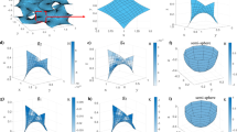 Fibronectin-coated PDMS surfaces were immunostained. Alternatively, rhodamine-labelled fluorescent fibronectin (20 μg mL−1, Cytoskeleton Inc.) was used. The transversal cross-section of the topography was obtained from reslicing of a vertical confocal z stack (z step 0.37 μm, 60 × lense of AN 1.4 yelding an optical slice of 1 μm) and subsequent binarizing and skeletonizing the fibronectin signal (Supplementary Fig. S1A). An equation \(y=f(x)\) was fitted to the cross-section by non-linear regression to describe the surface altitude as function of position along the transversal axis (Supplementary Fig. S1B). The curvature κ was then obtained at each point by \( k = \frac{{\ddot{y}}}{{\left( {1 + \dot{y}^{2} } \right)^{{\frac{3}{2}}} }} \) where the dot and double dot represent the first and second derivative of f(x), respectively. The local maxima and minima of κ over a single period of the topographical pattern correspond to the most convex and most concave points, respectively. Resulting values are shown in Supplementary Fig. S1C,E. Color-coded representations (Supplementary Fig. S1D) of the local curvature were produced by averaging κ between surfaces at each points and using binarized fibronectin staining as mask.