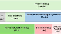 There is substantial evidence that deviations of the respiratory rate from its normal behavior can be used as a predictor of clinically relevant and potentially fatal events and conditions (see, e.g., the very recent review paper by Liu et al.1 and references therein), although the relevance of respiratory rate has long been overlooked in clinical setting2 and other fields3. For example, spontaneous breathing rates below six breath per minute (bpm) was prospectively shown to be a stronger predictor of subsequent in-hospital mortality than abnormal heart rate, hypertension or the decrease (or loss) of consciousness4. In a very recent study of non-invasive risk assessment for cardiac patients, abnormally high respiratory rate (\(> 18.6 \, \hbox {bpm}\)) and low expiration-triggered sinus arrhythmia turned out to be among the three most sensitive early risk indicators as components of the Polyscore index5; previous work also demonstrated the importance of respiratory rate for cardiac patients6,7. Therefore, it is appropriate to include measurements of respiratory rate and the influence of respiration activity on the heart in large cohort studies that aim at identifying early indicators for health risks and to study effects of healthy aging8,9.