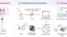 Duodenal biopsies were mounted in modified 3 mL Ussing chambers (Mussler Scientific Instruments, Aachen, Germany) as described previously5. TEER was recorded every 30 min during 2 h. Passage through the biopsy was evaluated with the paracellular probe fluorescently labelled dextran (FITC-dx4; MW = 4000 Da, 1 mg mL−1; Sigma-Aldrich, St. Louis, USA). FITC-dx4 was added to the mucosal compartment and serosal samples were collected every 30 min during 2 h, of which the fluorescence level was measured using a fluorescence reader (FLUOstar Omega; BMG Labtech, Ortenberg, Germany). The average values of time points 60, 90 and 120 min was taken. Results of TEER and FITC-dx4 passage were presented as values relative to the mean of the control group.