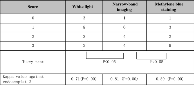 Table 1 Scores for the numbers of duodenal lesions made by endoscopist 1.