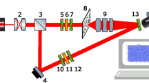 The Eigenvalue Calibration Method, widely described in44, has been used here to calibrate the system. The PSG and PSA have been constructed by using ferroelectric liquid crystals as explained in45. The light is delivered by a 150 Watt halogen source (Olympus CLH-CS, USA). and guided to the MPI by means of a liquid light guide (Thorlabs LLG0538-6, USA). Appropriate collimation optics was placed at the outlet of the liquid guide to produce a bright spot 6 cm in diameter at a working distance of about 30 cm corresponding to the sample position. A monochromatic CCD-camera (f080b Allied Vision, Germany, 512x386 pixels in binning mode) has been used as detector. It is provided with an electronics enabling to acquire 16-bit intensity images. The CCD-camera is provided of an objective of focal length f = 25mm and it has been positioned at a distance of about 20 cm from the sample in order to obtain a field of view of about \(5\times 4\,\text{ cm}^2\), corresponding to a nominal resolution of about 100 \(\upmu\)m/pixel. A wheel containing several dichroic filters is placed in front of the CCD-camera, enabling to perform measurements between 450 and 700 nm with steps of 50 nm and a bandwidth of 40 nm for each selected wavelength. In particular, the wavelength at 550 nm has been selected for the experiments described in this study.