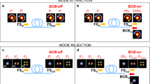 In experiments, we coupled a Gaussian optical beam with central wavelength at 1064 nm and pulse duration of 60 ps into a multimode Mach–Zehnder interferometer followed by a dispersive element, implemented by means of a bulk grating to perform a 1D/1D spatial/spectral analysis of the multimode output beam (see Fig. 1a). Specifically, the initial laser beam was launched into two 12 m-long spans of graded-index (GRIN) MMFs, respectively placed in each arm of the interferometer, and their output was spatially superimposed with a small angle (~ 4°) after propagation through the two independent GRIN MMFs sections (see “Methods”).