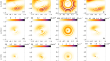 In order to measure the Gouy phase shift and remove it from the intensity-dependent phase measurement results, we performed an additional interferometric measurement (see Fig. 6a). We turned off the reference APT and removed the Al filter such that the inner and outer parts of the IR beam can interfere at the target source. Importantly, since the diameter of the inner part of the IR beam is smaller than the minimal diameter of the iris, it is not affected by the iris variation, providing a constant Gouy phase reference. We repeated exactly the same set of differential phase measurements as described in the main text for argon and nitrogen, however in this case the intensity of all harmonics oscillate at \(\omega _{\rm {IR}}\). Since the phase is measured through the HHG signal and the nozzle position is fixed for all measurements we can link the measured phase to the variation of the Gouy phase shift at the position of the HHG interaction region \(\Delta \phi ^{\rm {(G)}}(\Omega ,\Delta I)\). Figure 6b shows the measured Gouy phase shifts as a function of IR intensity variation at the target source. In order to reduce the IR pulse envelope averaging effects, the phase was extracted from a Fourier analysis over the highest harmonics 21 and 23. Finally, we applied a linear fit to the measured phases, and used it for removing the Gouy phase shifts from the results in the main text according to \(\Delta \phi ^{\rm {(G)}}(\Omega ,\Delta I)\). Note that since the Gouy effect is global, we use a single correction for all measurements, for both argon and nitrogen experiments, and find excellent agreement with the SFA and Coulomb phase calculations (Figure 2 in the main text).