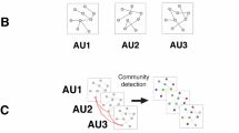 where \(A_{ij}\) is edge weight between nodes i and j, \(k_{i}\) and \(k_{j}\) are sum of the weights of the edges connected to nodes i and j, m is the sum of all of the edge weights in the graph and \(c_{i}\) and \(c_{j}\) are communities of nodes i and j, \(\delta\) is the Kronecker delta function. Higher modularity indicates a higher probability of the number of edges that exist within the community. We calculated the modularity of both static and dynamic reconfiguration of networks. Flexibility is generally defined as the ability to adapt to changes. In a network, flexibility is the number of times that each node changes allegiance, normalized by the total possible number of changes during scan time windows. It is a basic parameter used to understand how network reconfiguration occurs over time and measures the changes in the adherence of one community to another over time15,17,135. We sought to understand the flexible nature of the neural processes involved in creative cognition by using a network reconfiguration methodology to determine changes in the communities in brain networks and examine the consistency between static and temporal brain networks. We defined the flexibility across networks as mean-flexibility across all nodes in the network and defined and used in previous literature and adapted from the network community toolbox (http://commdetect.weebly.com/)15,136,137: