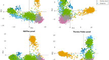 The genome-wide panel included approximately 2.2 million markers obtained for the 1KGP and HGDP samples. Genomic reads of both datasets were previously mapped to the human GRCh38 reference assembly. All quality controls were performed with PLINK v1.924. We extracted biallelic autosomal Single Nucleotide Polymorphisms (SNPs), removed SNPs with high genotyping error (> 1%), and excluded individuals with high missing genotyping rates (> 1%). After merging both datasets, we performed Hardy–Weinberg exact tests to exclude markers that failed a significance threshold of p < 1 × 10–7. For the LD-pruning process, we removed one SNP from a pair of SNPs if the LD was greater than the threshold of r2 = 0.2. For the LD-pruned HGDP-1KGP dataset, the final genome-wide panel included 2,180,911 SNPs.