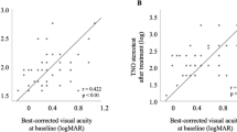 The limitations of this study include its small sample size and short follow-up duration. We evaluated the patients for 12 months following treatment. In the COPERNICUS study, the BCVA 24 months following treatment with intravitreal aflibercept injection was 3.2 letters lower than that following 12 months in patients with CRVO27. Since CRVO is a retinal disease with a poor prognosis, long-term monitoring of the visual functions and QOL is important. Other factors known to affect stereopsis include pupil size28, accommodation5, and eye dominance29; however, these factors were not assessed in this study. Nevertheless, the influence of pupil size and eye dominance on stereopsis is negligible, and is unlikely to have affected our results. Even if the pupil size changed from 1 to 6 mm, the change in TST score was 0.18 in a previous study28, while the TST score changed by 0.2 with the change in the dominant eye29. Future studies with larger sample sizes and longer follow-up periods incorporating other factors are needed to further our understanding of stereopsis and visual function factors in patients with CRVO.