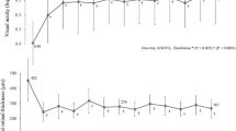 Table 1 presents the baseline characteristics of the patients with CRVO and normal controls. This study enrolled 23 patients with CRVO and 13 normal controls. The stereopsis (TST and TNO) and composite VFQ-25 scores were significantly worse in CRVO compared to normal controls. No differences were observed between the age or sex of the participants of the CRVO and normal groups. No patient with CRVO discontinued treatment during the study period. The mean number of injections during the treatment period was 5.6 ± 2.0 (range 3–8 injections). None of the patients experienced ocular treatment-emergent serious adverse events such as glaucoma, iris neovascularization, RD, vitreous hemorrhage, and endophthalmitis. None of the patients underwent cataract surgery or panretinal laser photocoagulation in the affected eye or in the other eye during the follow-up period.