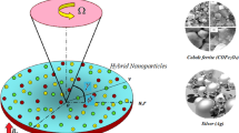 Hybrid nanofluids are a unique type of fluid that operates well in energy translocation when compared to traditional fluids such as water and oil. When the heat intensity is high enough, nanofluids may be used in a wide range of thermal activities11,12. Hybrid nanofluid flow is used in a variety of applications, including heat exchangers, heat pipes, solar energy, manufacturing, automobile sector, air conditioning, generator cooling, nuclear system cooling, electronic cooling, ships, transformer cooling and biomedicine13. In this study, we examined the characteristics of silver and magnesium oxide nanostructures using water as a carrier fluid. Because of their distinctive chemical and physical features, Silver nanoparticles (AgNPs) are being used in a wide range of industries, including pharmaceuticals, foodstuff, consumption products, medical services, and manufacturing. Among these optical, thermal and electrical characteristics, as well as strong electrical conductivity and biological qualities14. Magnesium Oxide Nanoparticles (MgONPs) are an antimicrobial that is harmless and reasonably cheap to obtain. The United States Drug and Food Administration has approved MgONPs as non-toxic and safe chemicals (21CFR184.1431). Recent advancements in technologies and medicine have resulted in notable discoveries with great promise. MgONPs, for instance, can alleviate heartburn, activate bone healing scaffolds after they have been activated, and function as hyperthermia accelerators in cancer treatment15. Anuar et al.16 evaluated the boundary layer flow and thermal performance of a hybrid nanoliquid including silver and magnesium oxide nanocomposites as it passed through an inclined stretching sheet with buoyant and suction force. The observations show that raising the quantity of Ag-MgO/water nanocrystals in nanofluid decreases the Nusselt number. Dinarvand et al.17 used multiple approaches to investigate the constant laminar magnetohydrodynamics (MHD) flow of an Ag-MgO/water hybrid nanofluid across a lateral thin needle with heat radiation. Bilal et al.18,19 addressed the relative contribution of magnetic and electric hydrodynamic effect on the water-based CNTs and iron oxide hybrid nanofluid flow between two circulating plates. Heat transfer has been assumed to rise as the magnetic field, electric term and Reynolds number improve. Sreedevi et al.20 computationally evaluated the Ag-water-based radiative nanoliquid with fluid flow and heat transition characteristics within a circular tube with thermal conditions on vertical walls. When 0.05 volume fraction silver nanoparticles are dispersed in water, the heat transference rate improves from 6.3 to 12.4%. Zhao et al.21 investigated the influence of viscous dissipation on the flow of a hybrid nanofluid across a stretched sheet utilising various nanoparticles to improve the fluid's thermal conductivity. Kumar et al.22 studied the effect of activation energy on the Darcy–Forchheimer flow of Casson fluid using Graphene oxide and Titanium dioxide nanoparticle suspensions in a porous medium using 50% Ethylene glycol as the base fluid. Khan et al.23 presented about the Marangoni convection of a hybrid nanofluid made up of two nanoparticles and a base fluid. Some related literature may be found in24,25,26,27.