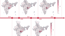 The prevalence of malaria cases decreased in the Purulia district after the distribution of LLINs in 2017 and 2018 in the malaria risk population of ten endemic blocks. On average, the Purulia district provided one insecticide-treated net for two individuals in 2017 and one individual in 2018 in the ten malaria-endemic blocks, at a rate higher than many other malaria-endemic countries29. Notably, LLINs distribution may have a direct impact on malaria cases30, 31. For example, according to the 2016 API, the Santuri block (63 cases) was selected for LLINs distribution, whereas LLINs were not distributed in R.N. Pur-II (48 cases). A decreasing trend in malaria cases was detected in Santuri from 2017 onwards, and no cases were reported in 2020. In contrast, the malaria cases in R.N. Pur-II remained steady from 2017 to 2020, and this block may not be malaria-free in 2025, according to the projected exponential model (Fig. 4). Our study also had several limitations. First, the study was limited by a single malaria-endemic district restricting the actual scenario of malaria in West Bengal. Second, at the time of projection determination, we have assumed that different environmental factors like rainfall, aridity, humidity, precipitation and other factors are constant throughout this study period. However, there were confounding factors that could play a significant role in this projection. Finally, due to COVID-19 pandemic, the essential malaria interventions are significantly interrupted, causing difficulties in finding out the real number of malaria cases in this malaria-endemic district.