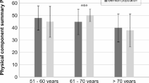 The Korean version of SF-12 Version 2 (SF-12v2) Health Quality of Life questionnaire was used to assess the quality of life in the recent 4 weeks34. This is a validated scale to measure general health quality of life in the general population of South Korea. Scores of health domain scales and component summary measures were standardized as T-scores using a metric with a mean of 50 and a standard deviation of 10 based on the 2009 U.S. general population samples, as indicated in the official user manual of SF-12v235. Standardized scores above and below 50 are above and below the average in the 2009 U.S. general population35.