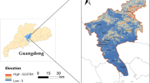The elevation data are provided by the Japan Aerospace Exploration Agency (http://www.eorc.jaxa.jp/ALOS/en/aw3d30/data/index.htm); the horizontal resolution is 30 m, and the elevation accuracy is 5 m. The road and railway data are provided by Openstreetmap (download.geofabrik.de/), and the distance between roads and railways were calculated. The land use types are provided by Tsinghua University (http://data.ess.tsinghua.edu.cn/) with a resolution of 10 m. GDP, secondary industry GDP and investment in fixed assets were provided by Guangzhou Statistics Bureau28.