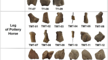 The average absorptivity ratio values for all artifacts are listed in Supplementary Table S3 online. In order to correlate these measured values to the artifacts’ firing temperatures, six selected artifacts (three moulds and three cores) were analyzed by the refiring approach (RA). This involved refiring samples of each artifact at various temperatures and observing the resulting changes in the absorptivity ratio (Fig. 5a). At low refiring temperatures, each sample’s absorptivity ratio remains constant. However, above a threshold temperature, the absorptivity ratio begins to decline steadily with increasing refiring temperature. This threshold indicates the point at which the refiring temperature first exceeds an artifact’s original firing temperature. For example, the absorptivity ratio versus temperature curve of mould H315:58-7 begins to slope downward between 200 and 300 °C, implying an original firing temperature within that range.