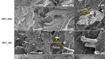 Differences in PET melting temperatures (Tm) between PET control (single peak at 255 °C) and PET fabrics/fibers (two melt peaks—first ~ 250 °C and second between 255–258 °C, Fig. 7). These differences can be explained by different PET sample processing—flat extrusion for the PET control, and extrusion plus fiber stretching followed by unknown but specific heat treatment for the PET fibers used to weave the fabrics. Extrusion and heat treatment are proposed to strongly modify resulting polymer crystalline structures of the thermoplastic polymer PET; in the case of fiber extrusion and extension, application of uniaxial tensile stress increases again the orientation of macromolecular chains along the fiber, leading to partial crystallization and increases to PET Tm. The appearance of double Tm peaks has been attributed to different polymer crystal lamellae thickness: Kong and Hay demonstrated that the secondary melt peak was produced by polymer re-crystallization in the thickest lamella41.