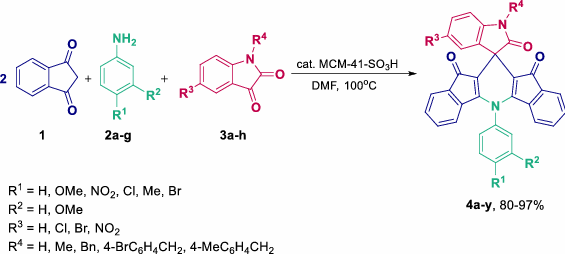 Table 4 Synthesis of spiro[diindeno[1,2-b:2′,1′-e]pyridine-11,3′-indoline]-2′,10,12-triones.