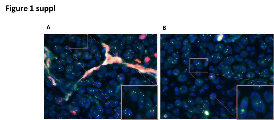 Three independent observers analyzed the FISH results of the nine PDXs models to search for TOP2a copy number alteration. None of the samples showed amplification of the TOP2a gene (Fig. 1 supplementary).